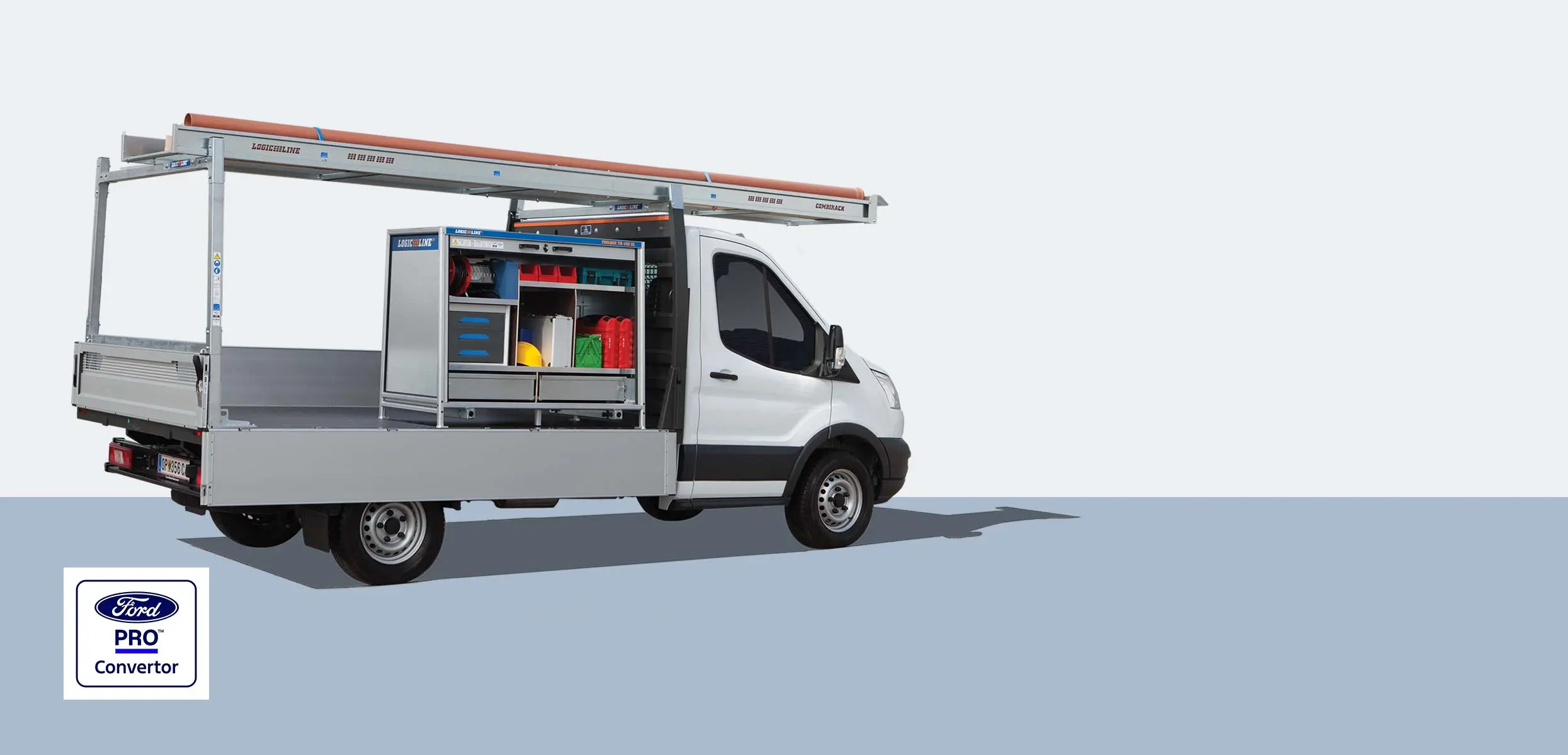 As a Ford Pro Converter, LogicLine offers high-quality, reliable constructions that are subject to stringent evaluations by Ford. We provide professional accessories for your Ford commercial vehicle to transport tools and materials safely. Choose the right solution from our extensive range to meet your requirements and workflows.